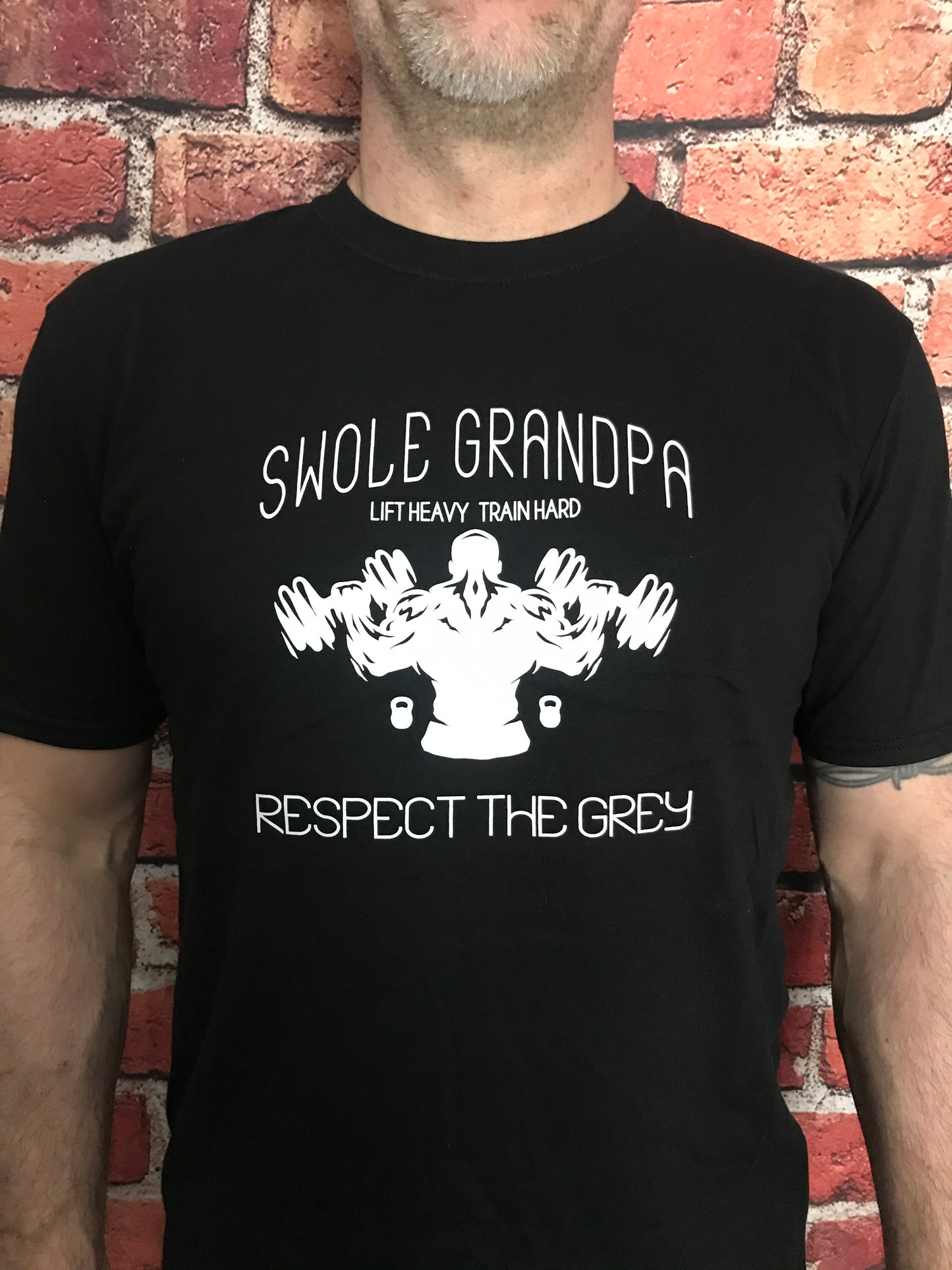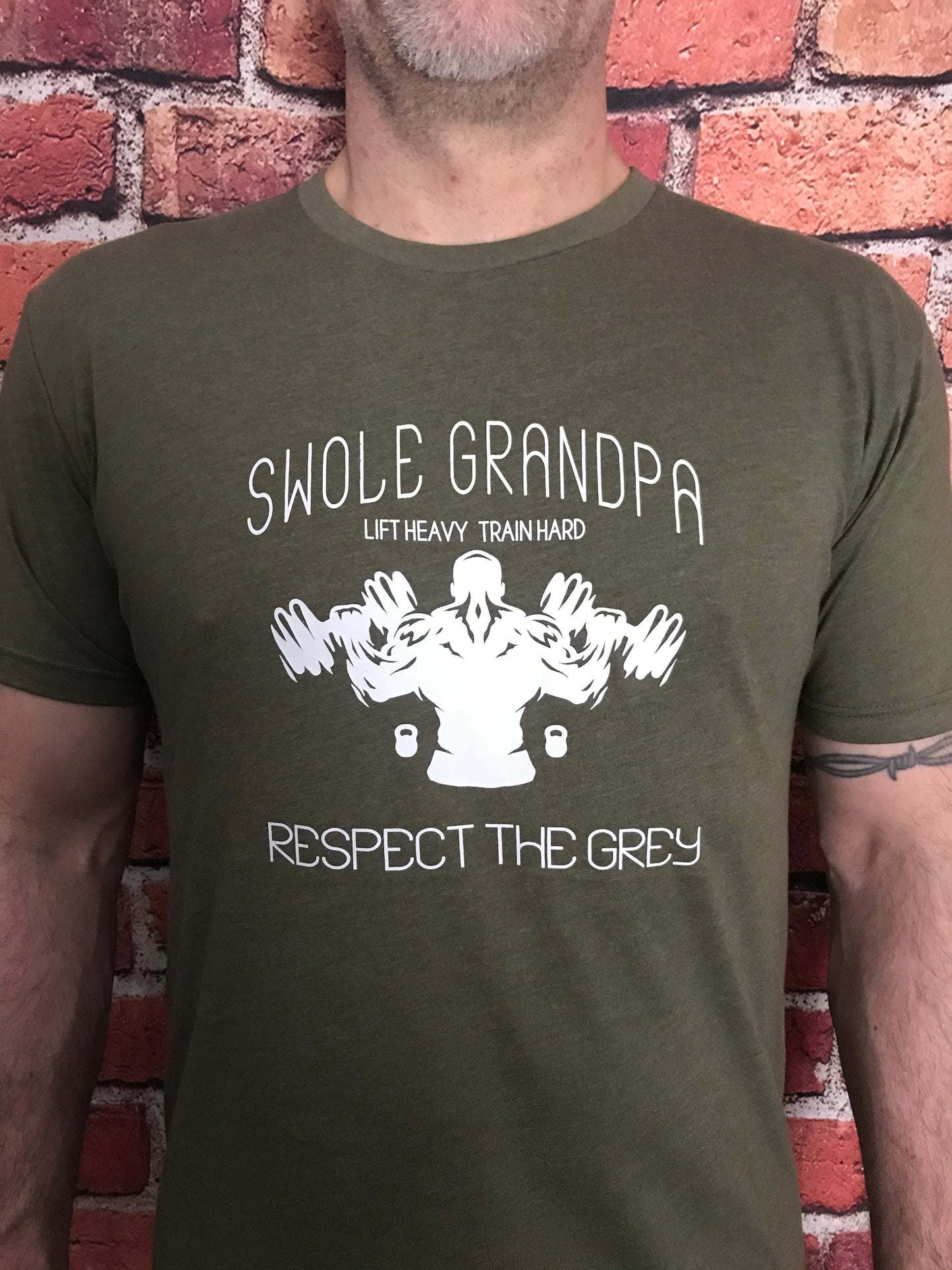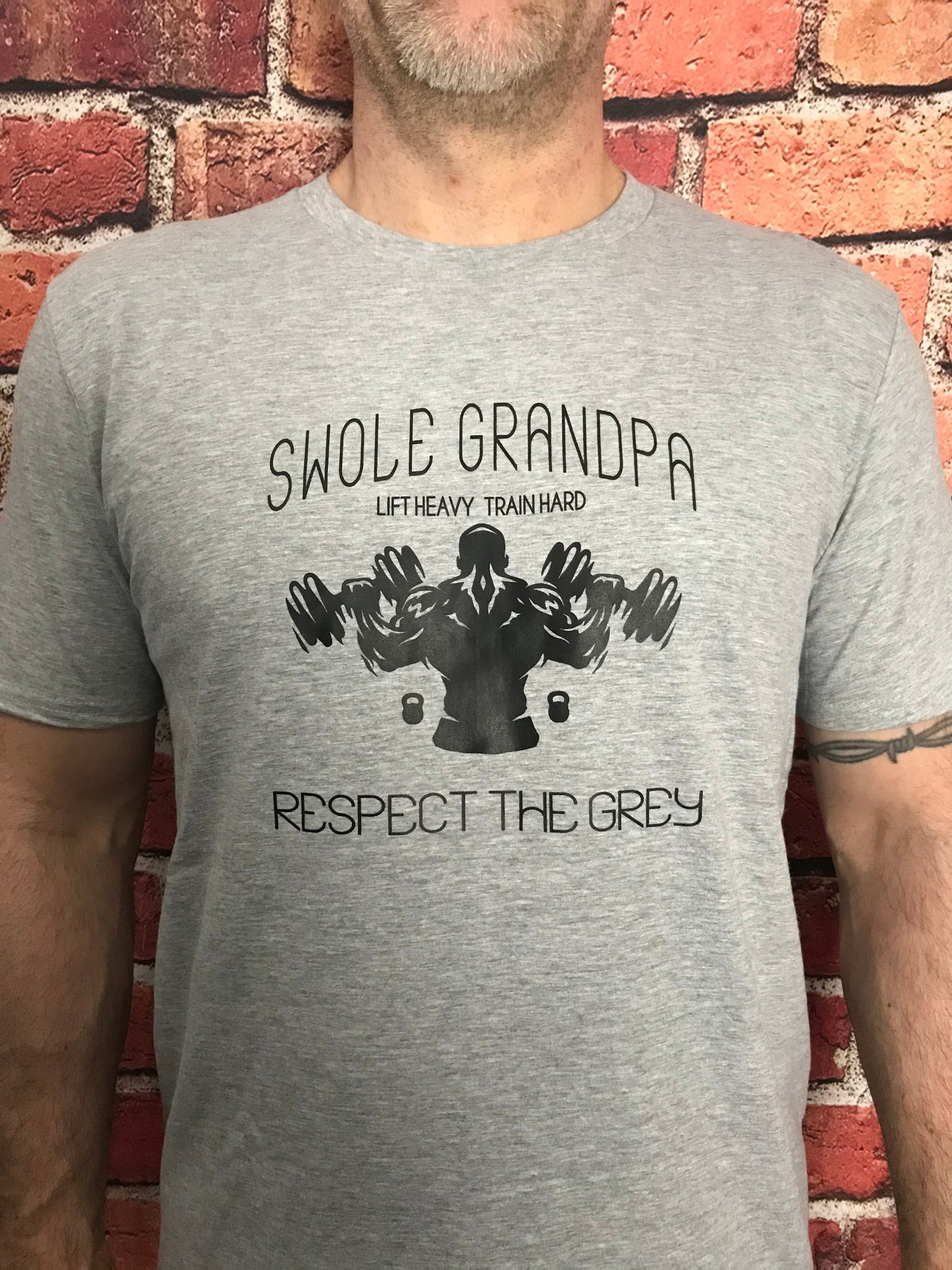 Stay cool and comfortable in our "Swole Grandpa - Respect the Grey" short sleeve t-shirt. Made with 100% lightweight cotton, this shirt is perfect for your next workout or gym session. Show off your confidence and let everyone know that age is just a number.
