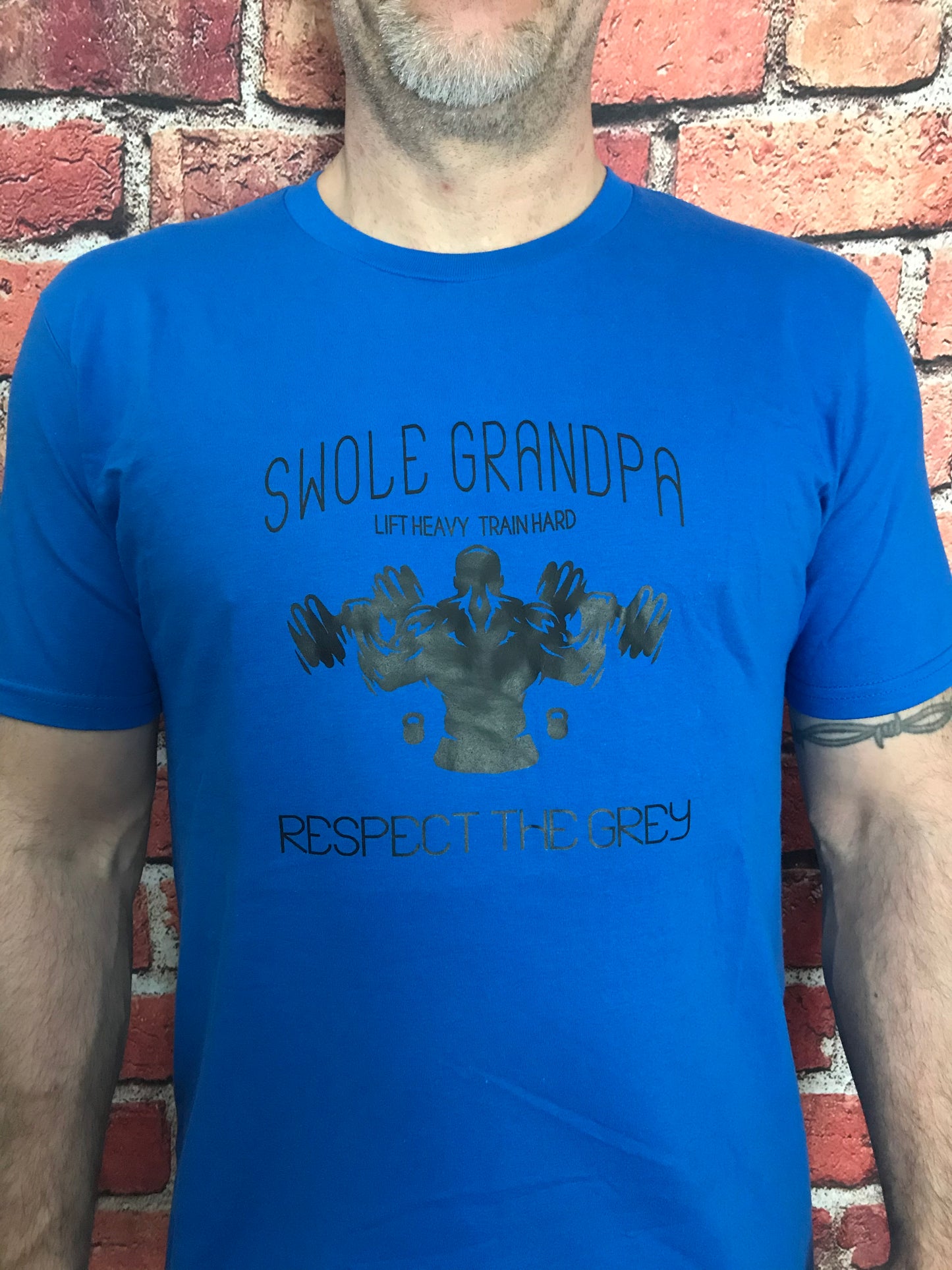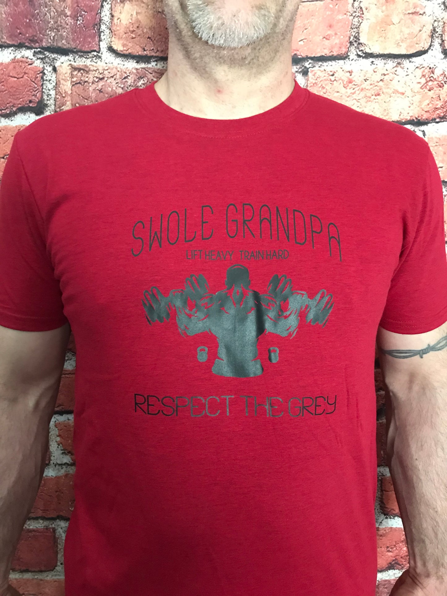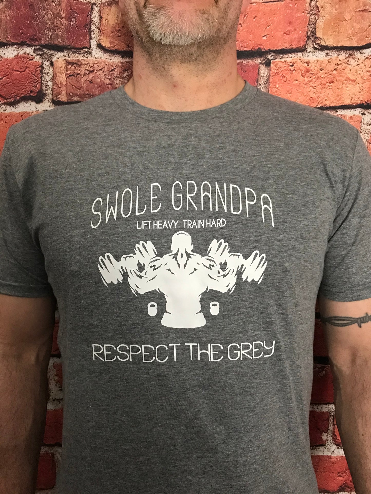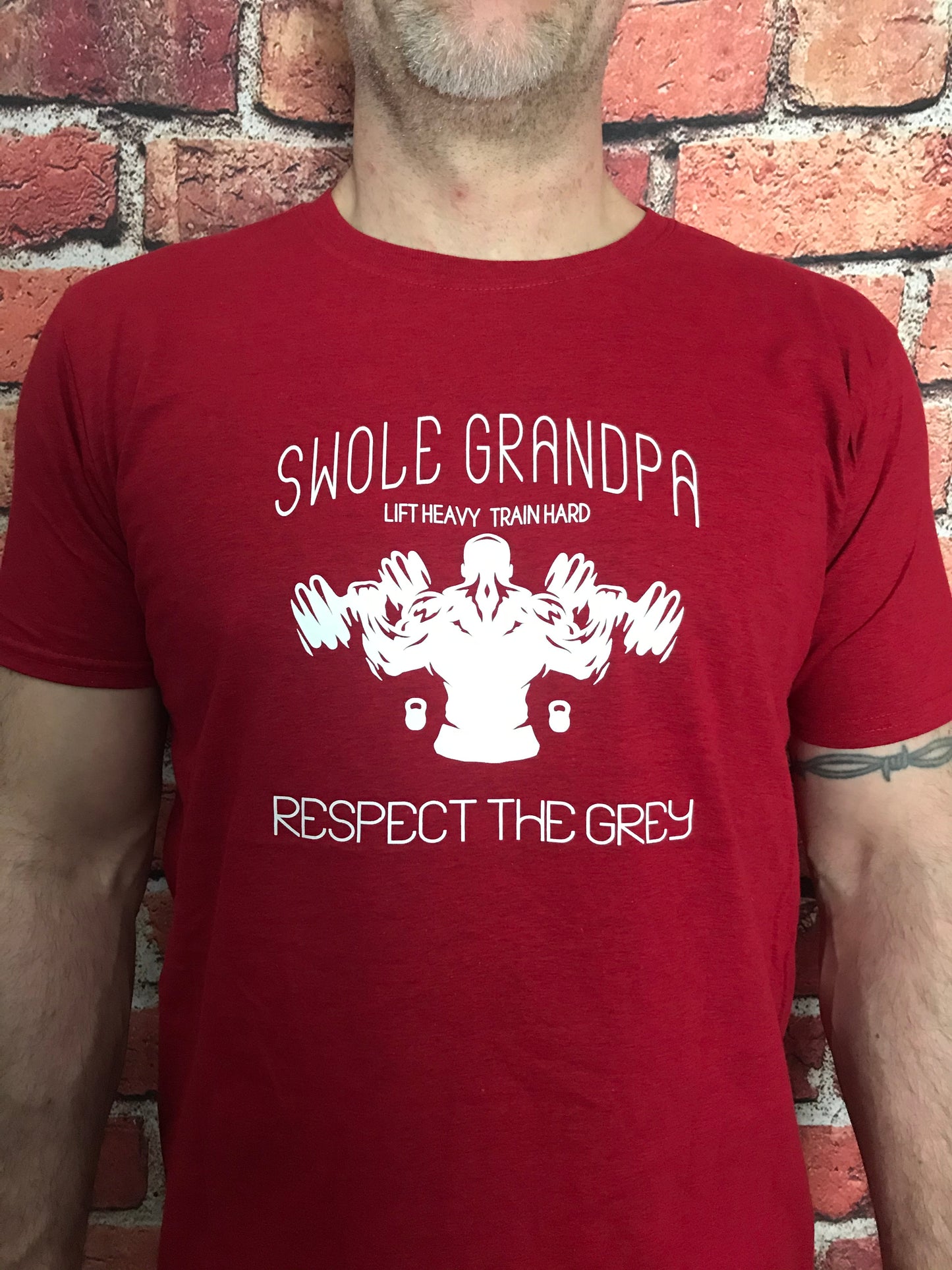 Stay cool and comfortable in our "Swole Grandpa - Respect the Grey" short sleeve t-shirt. Made with 100% lightweight cotton, this shirt is perfect for your next workout or gym session. Show off your confidence and let everyone know that age is just a number.